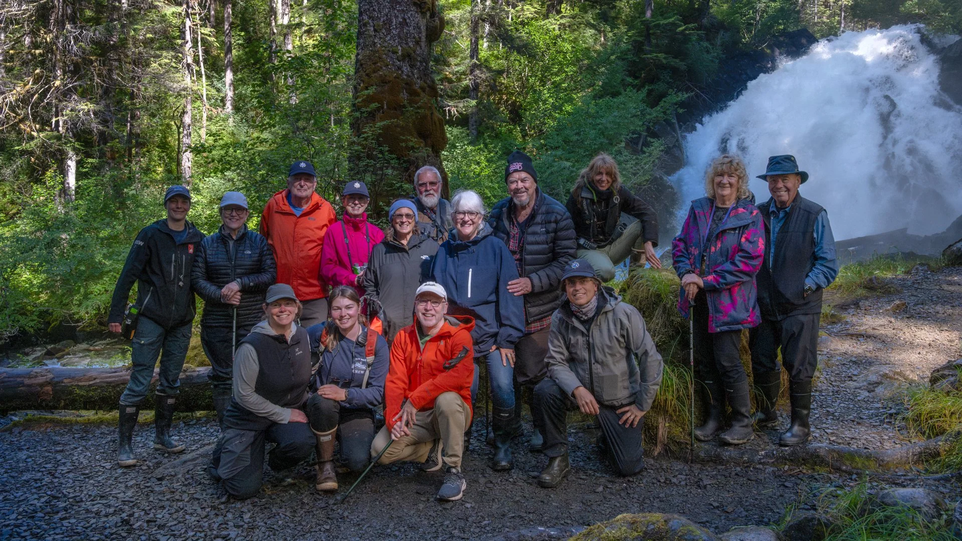 At the heart of the painting is the central mother tree, an ancient Western Red Cedar, revered as the “tree of life.” This majestic tree is anchored with massive roots alongside moss-covered nurse logs, providing shelter to small shade-tolerant western hemlock and Sitka spruce saplings. The tree's markings reveal traces of the Gitga’at people, who have been harvesting tree bark and living off the bounty of the stream, where it meets the ocean, for thousands of years. In early autumn, salmon make their upstream journey to spawn, drawing numerous eagles and black bears to the area. The Spirit Bear, a rare genetic variation of the black bear, is also part of this remarkable ecosystem.